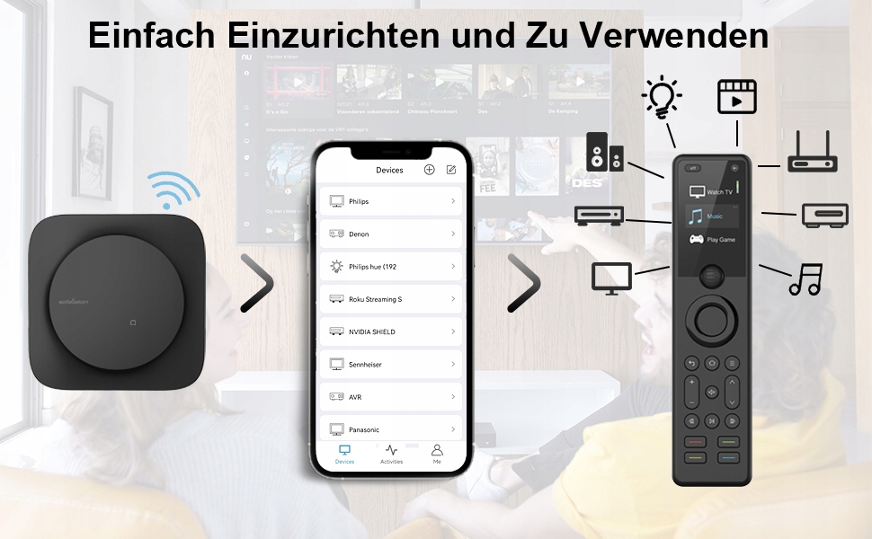 Програма SofaBaton перетворює ваш смартфон на iOS або Android на вдосконалений універсальний пульт дистанційного керування. X1 спрощує додавання нових пристроїв і перемикання між ними завдяки вдосконаленому дизайну коліщатка прокручування та швидкій реакції.