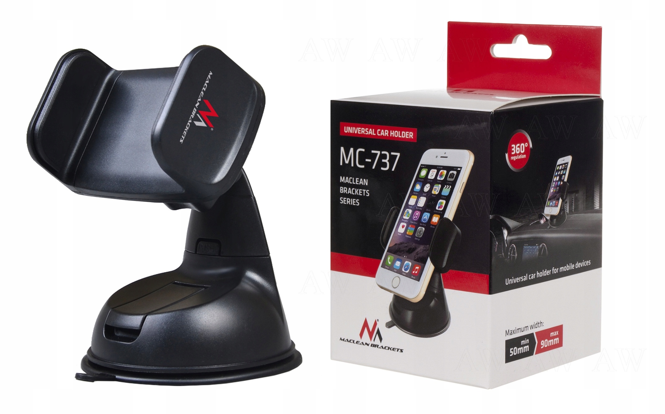 Універсальний автомобільний тримач від відомої компанії Maclean Brackets, модель MC-737 Універсальний автомобільний тримач для мобільних пристроїв. Головка, що обертається на 360 градусів, дозволяє регулювати положення пристрою відповідно до ваших уподобань. Тримач можна встановити на панелі приладів, навіть якщо вільного місця мало. Завдяки міцним елементам з ABS-пластику рукоятка надзвичайно міцна, довговічна та ударостійка.