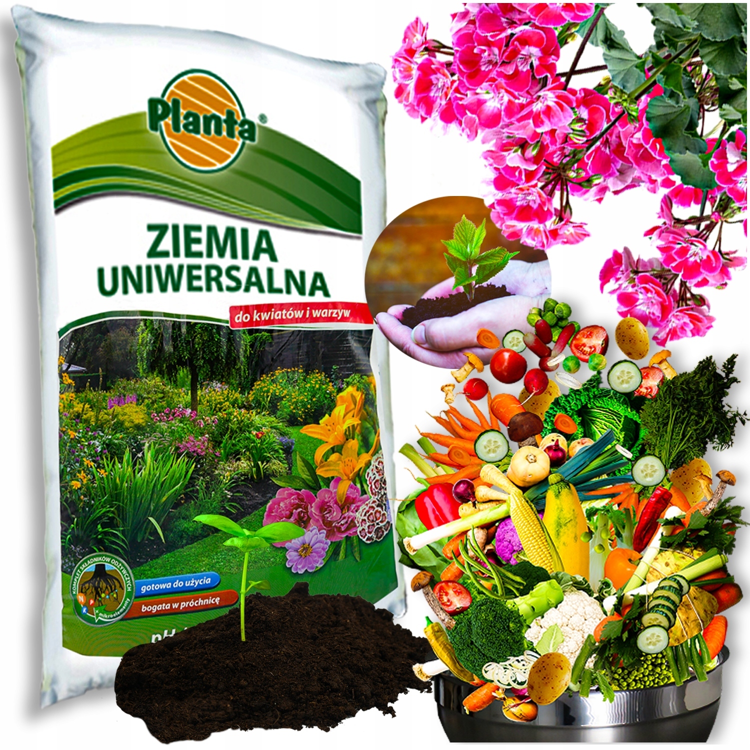 Універсальний ґрунт для квітів та овочів готовий використовувати підкладку, складену на основі суміші торфу, та спеціалізованого добрива, що містить набір необхідних поживних речовин "NPK" (багатокомпонентні мінеральні добрива, що містять азот, фосфору та касій), збагачені цінними мікроелементами. Універсальний ґрунт Planta є родючим і багатим гумусом, він характеризується відповідною структурою, яка допомагає зупинити поживні речовини та оптимізувати умови повітряної води.