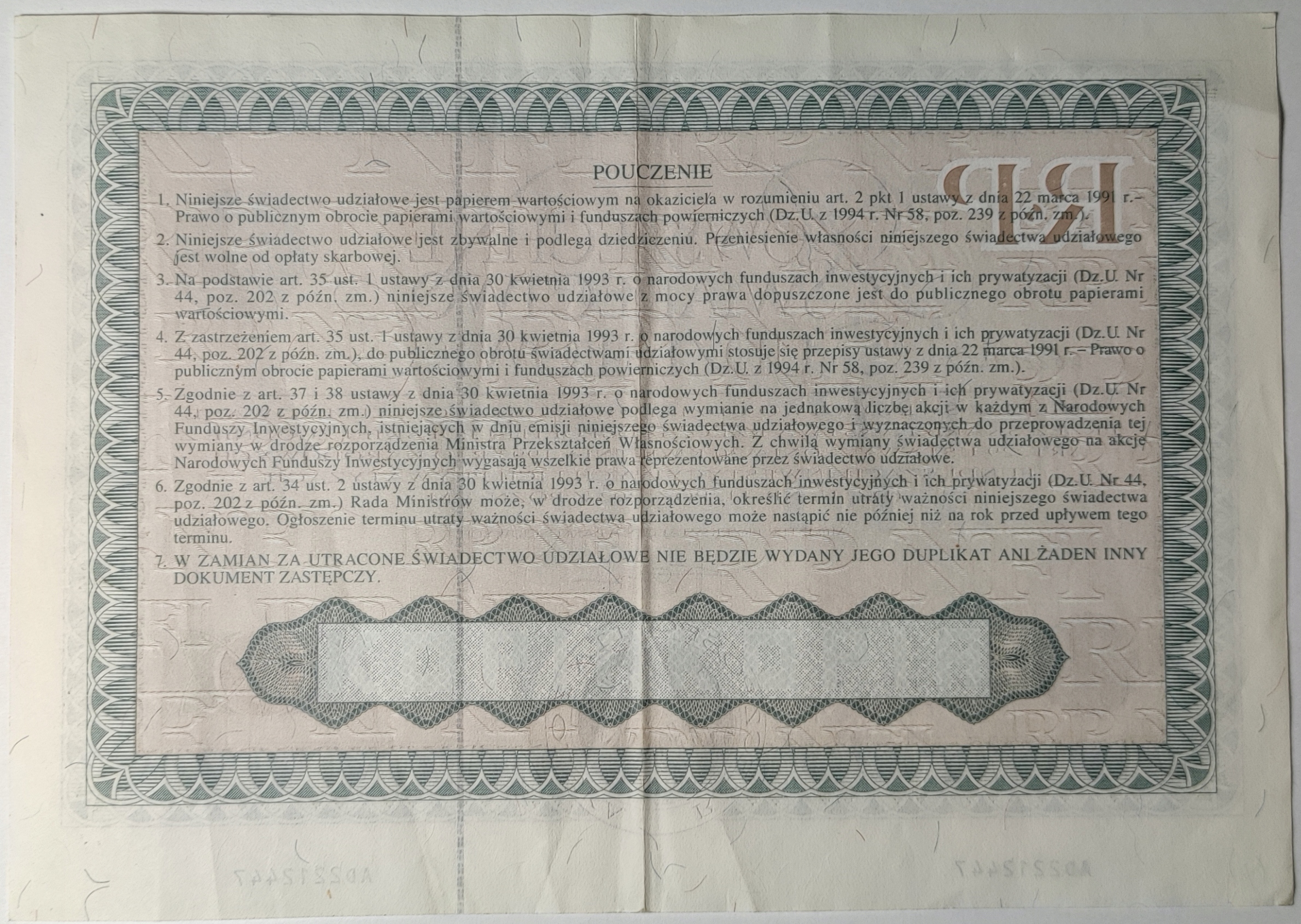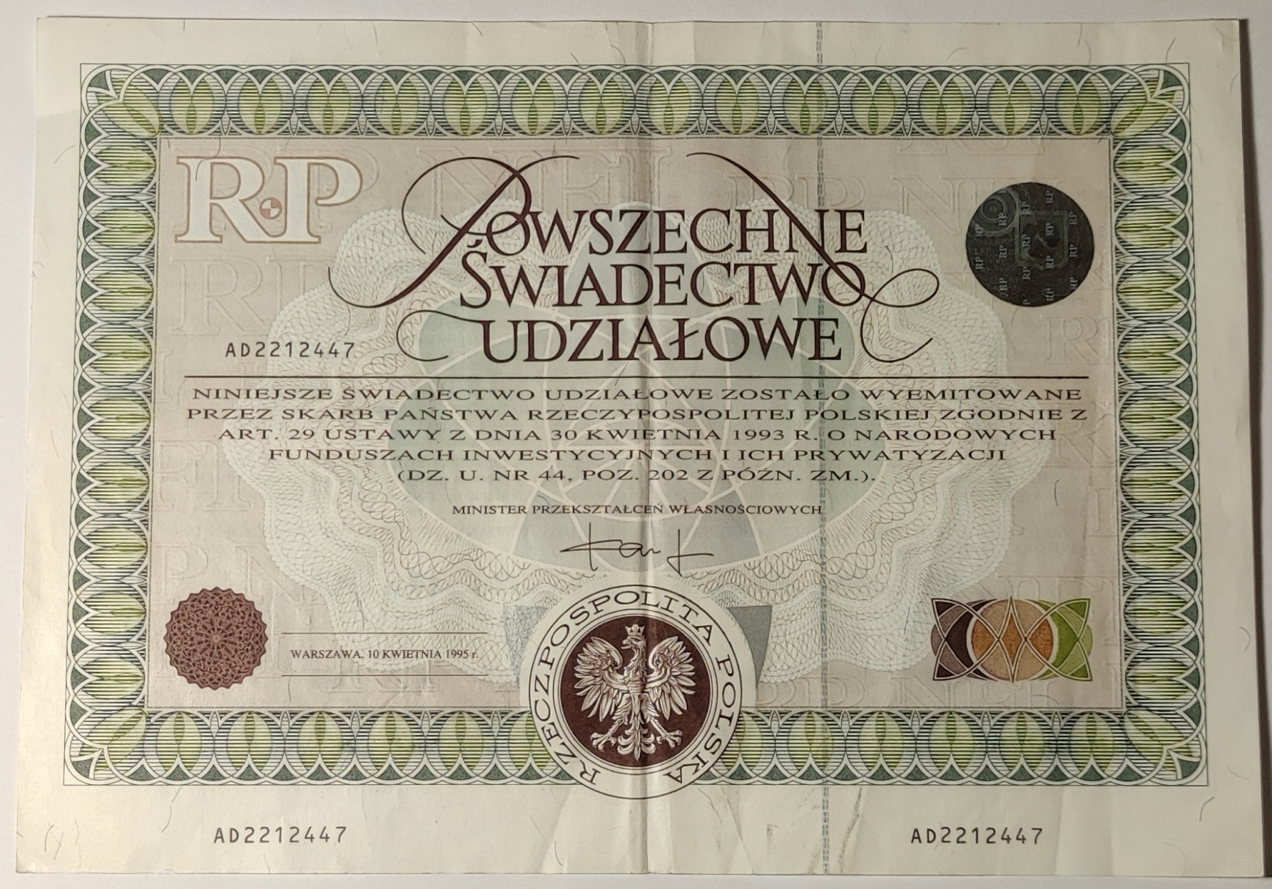 Універсальний сертифікат акцій 1995 р.