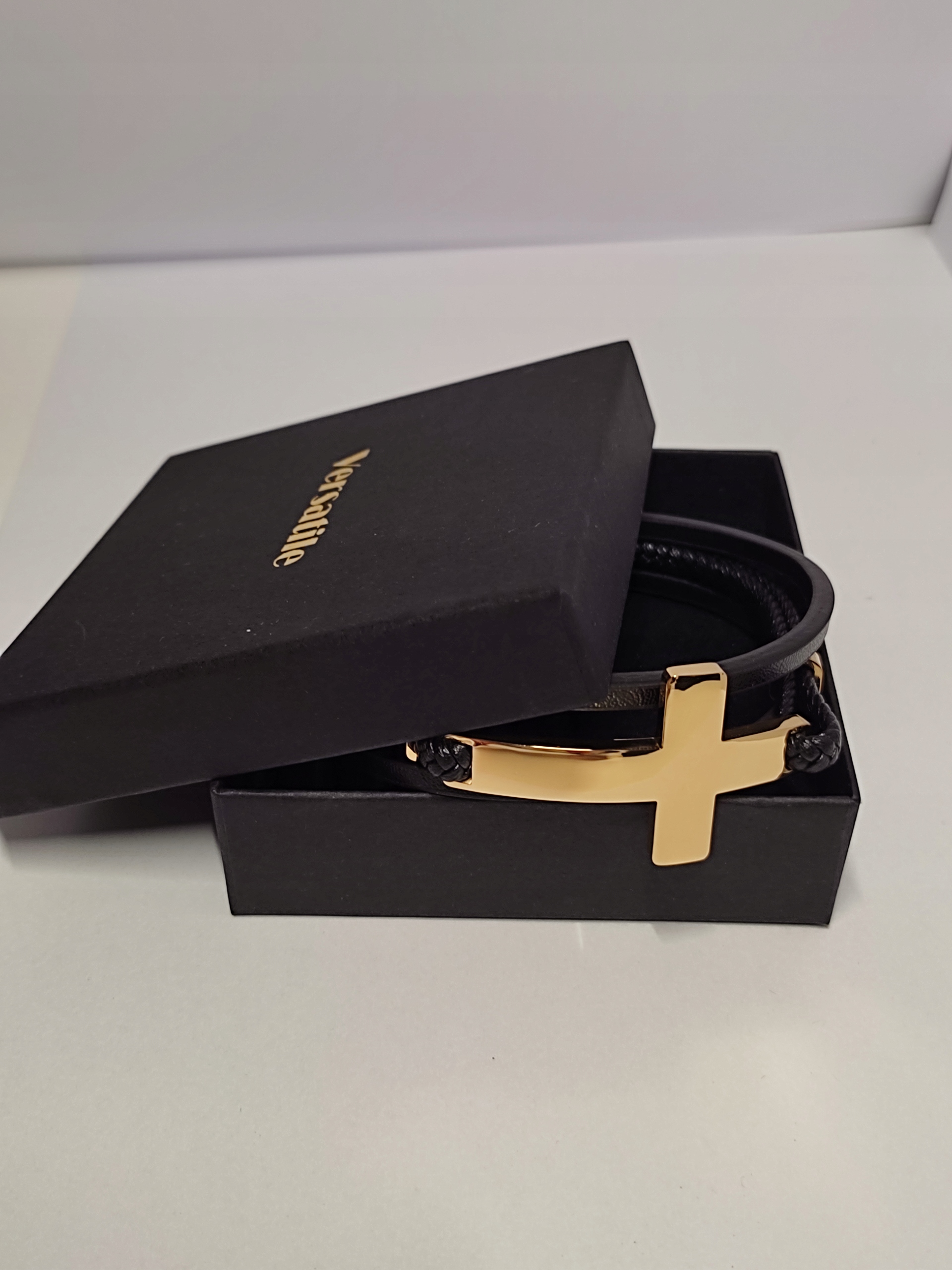 Універсальний шкіряний браслет, великий золотий універсальний хрестик