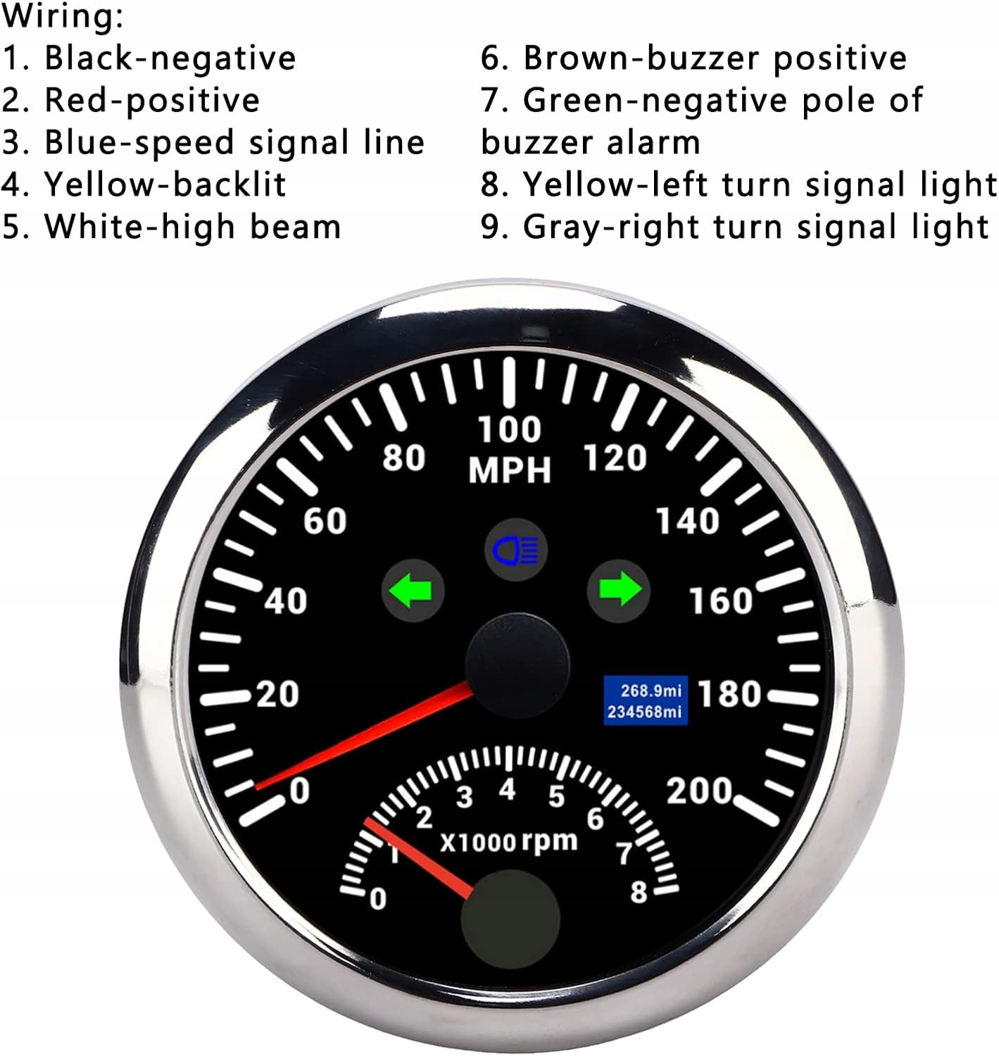 Незалежно від того, чи модернізуєте ви автомобіль, човен, яхта, кемпер або будівельна машина, цей спідометр та GPS тахометр забезпечать точні показання та покращать безпеку водіння. Регульована швидкість тривоги та міцна водонепроникна конструкція роблять його незамінним доповненням до кожного драйвера!