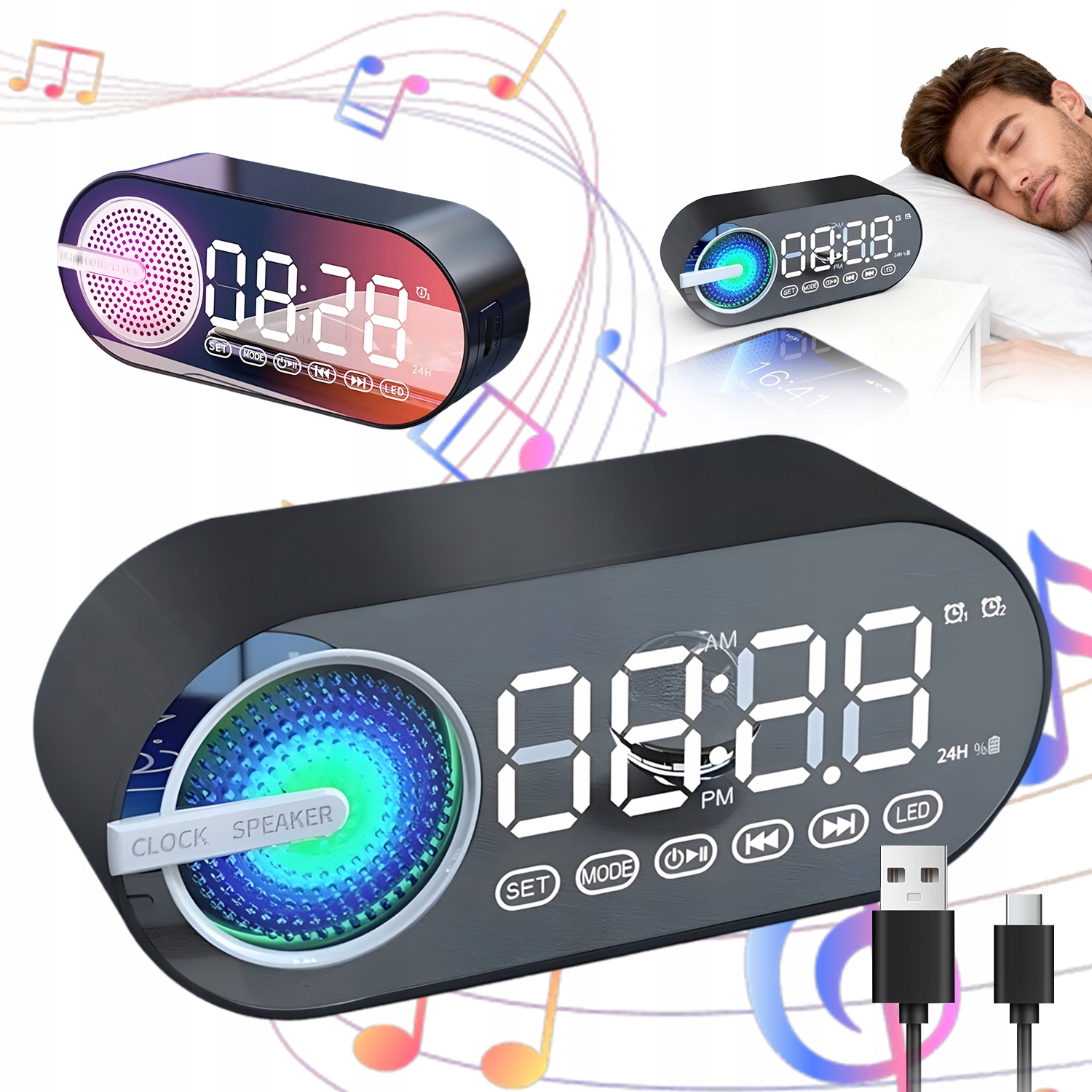 УНІВЕРСАЛЬНИЙ СВІТЛОДІОДНИЙ БУДИЛЬНИК ДИНАМІК BT RGB РАДІООСВІТЛЕННЯ ЗАРЯДКА USB