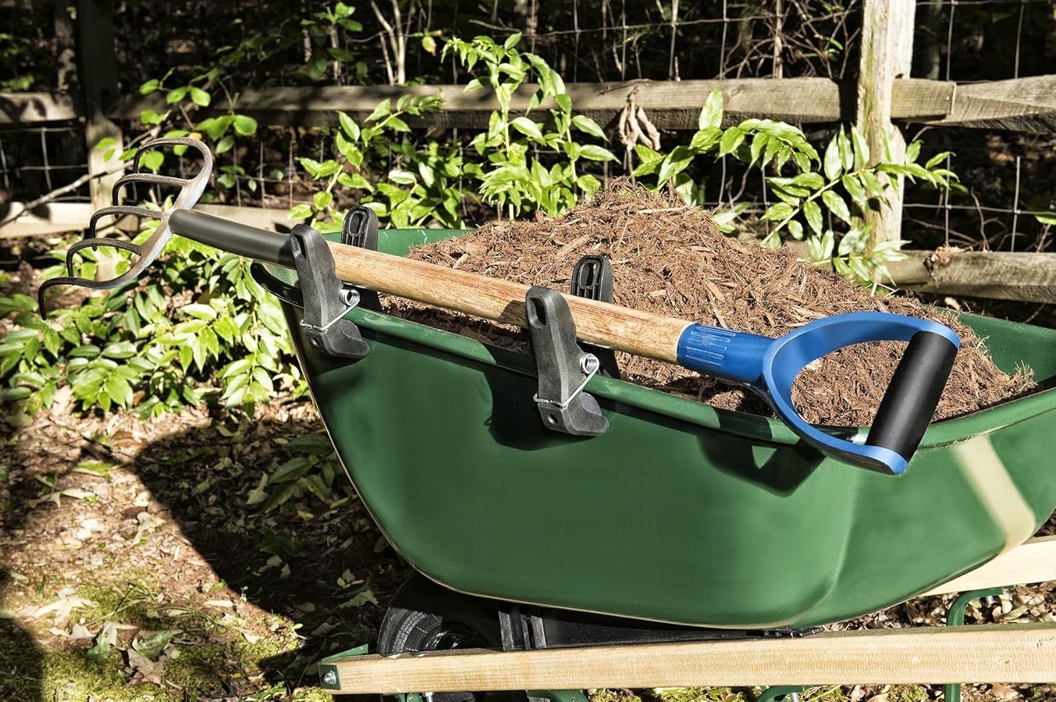 - Прикріплюйте та транспортуйте окремі інструментинаприклад, граблі, лопату тощо - також ідеально підходить для зберігання інструментів у сараї чи гаражі.