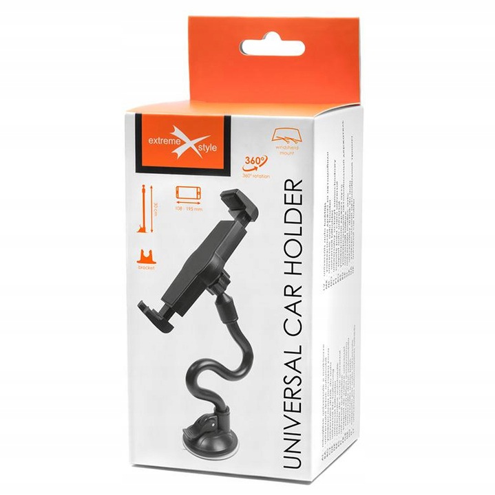 Універсальний автомобільний тримач для мобільних пристроїв. Високоякісні матеріали та надзвичайно ретельна обробка роблять ручку дуже довговічною. Головка тримача оснащена двома пружинними кронштейнами, тож вставляти або виймати телефон можна однією рукою.