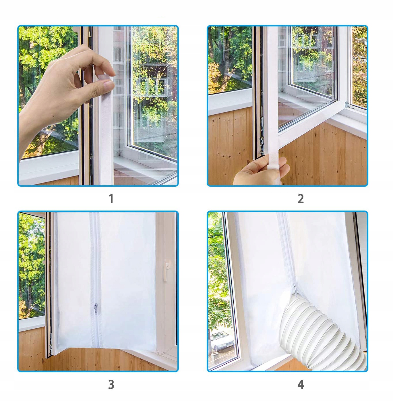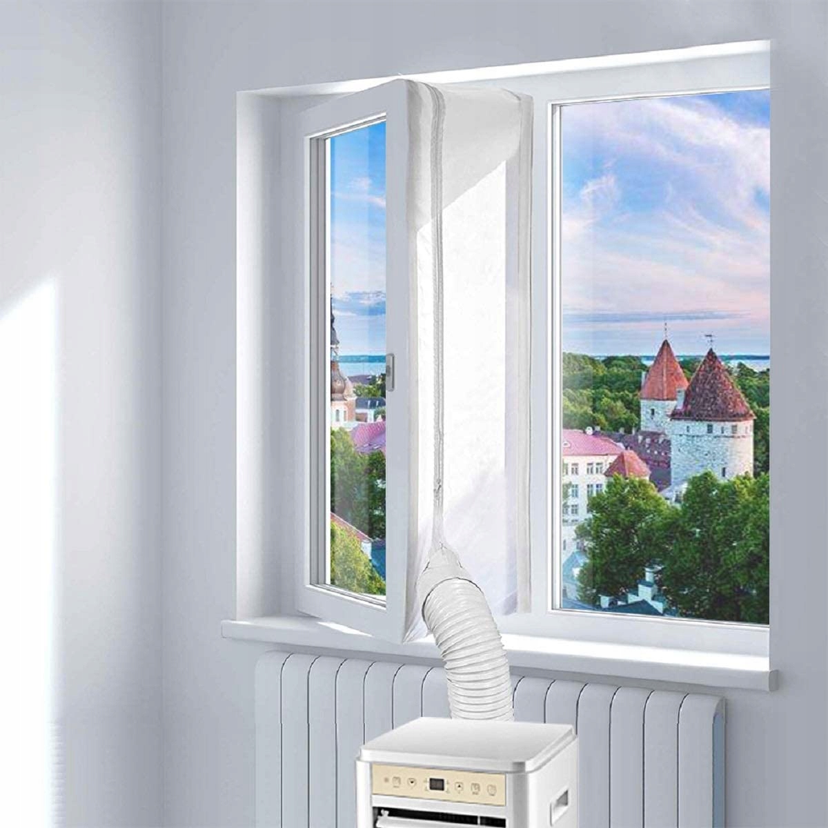 🔷🔷 【ЛЕГКИЙ ВСТАНОВЛЕННЯ】 - НЕ ПОТРІБНО СВІДРИТИ ОТВОРИ. Немає потреби у віконних комплектах, все, що вам потрібно, поставляється з віконним ущільнювачем! Просто приклейте самоклеючу стрічку з гачками до віконної рами та віконної кишені. Прикріпіть віконний ущільнювач до гачкової стрічки. Потім розпакуйте віконний ущільнювач і пропустіть шланг кондиціонера через вікно. Нарешті, щільно закрийте блискавку навколо шланга.