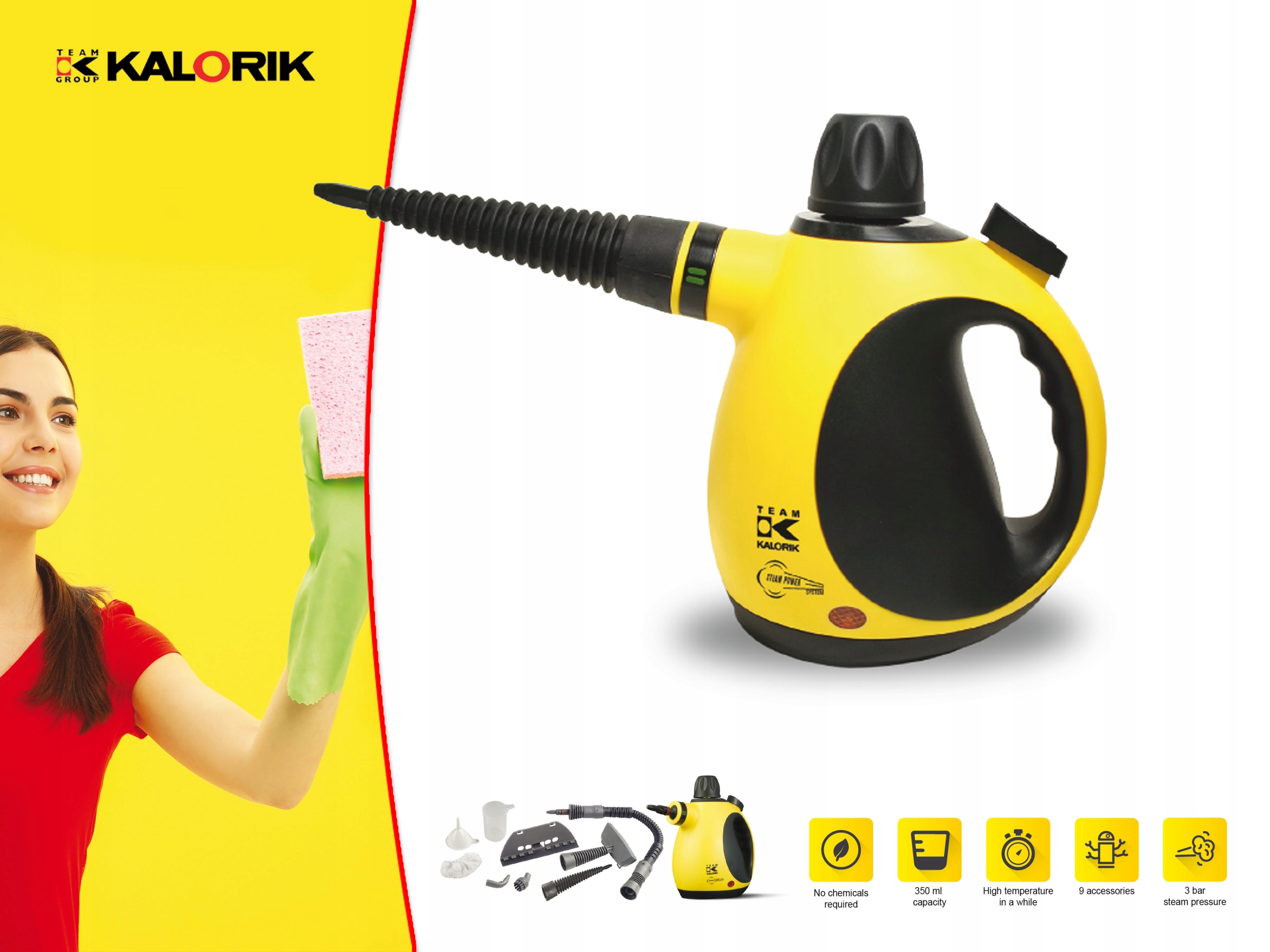 Чи можете ви уявити легке та ефективне очищення без використання хімікатів? Тепер це можливо завдяки пароочиснику KALORIK. Це ретельно розроблений прилад, який має кілька корисних порад, які дозволяють очистити будь-які, навіть важкодоступні поверхні та різні матеріали. Ідеально для миття вікон, дзеркал, вікон автомобілів і навіть для м'яких поверхонь і всіх гладких поверхонь.