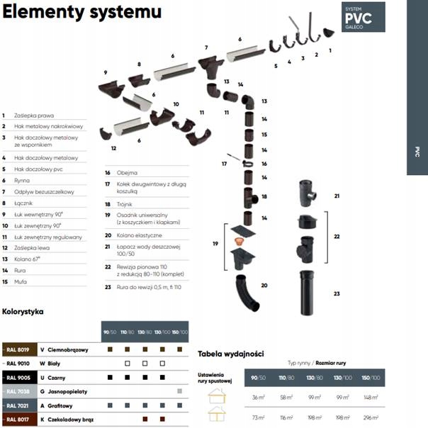 Відповідно до системи GALECO PVC 2, колір відстійника аналогічний RAL 7021 GRAPHITE (Y) відповідно до кольорів виробника.