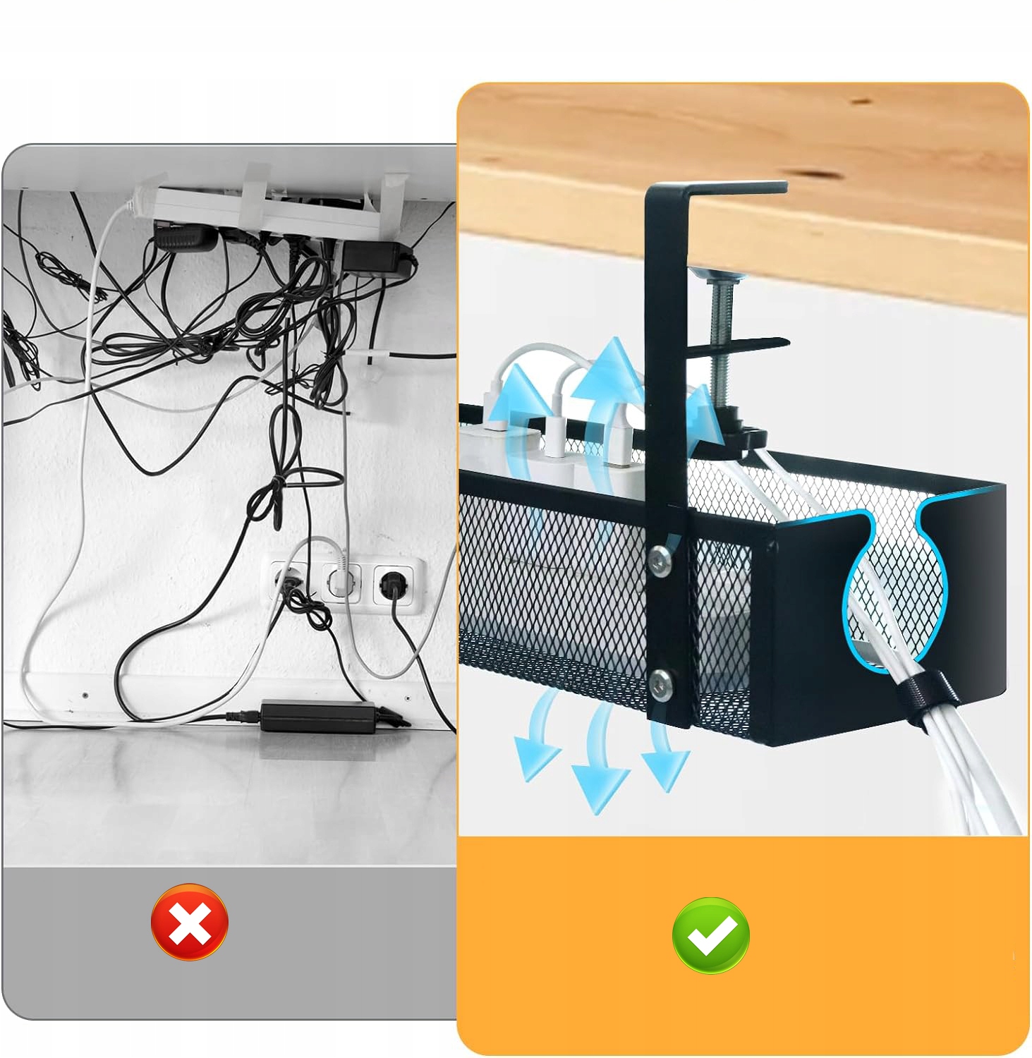 - Наш лоток на кабелях під столом виготовлений з високоякісної вуглецевої сталі, міцний, повністю зварений і пофарбований у порошок. Він не іржавий, не накопичує пил і не деформується легко.