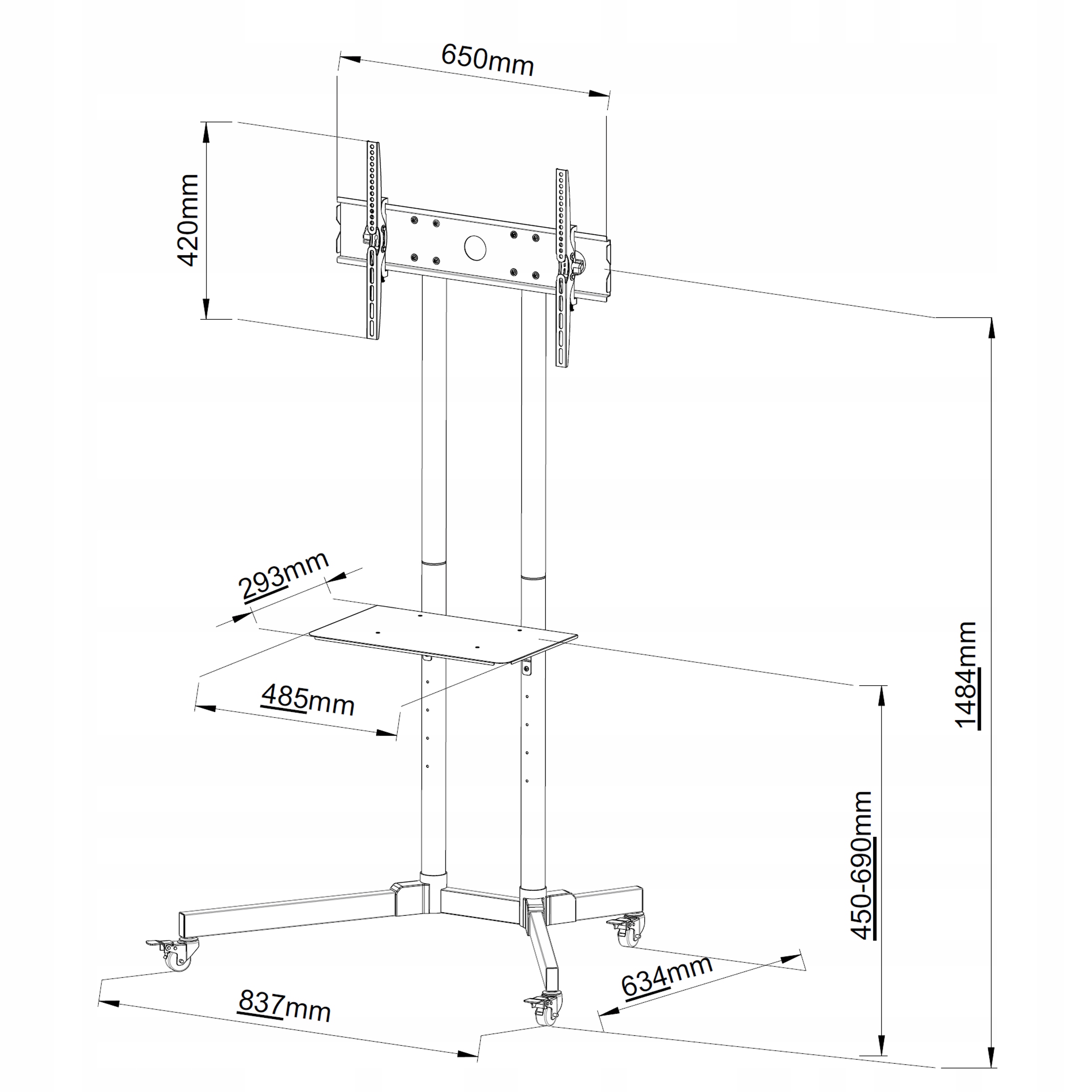 - регульована полиця для AV-обладнання - вантажопідйомність до 4 кг
