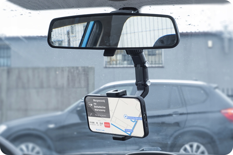 Зручна суцільна ручка для дзеркала заднього погляду автомобіля - це безпечне рішення для розміщення телефону у видимій, але не перешкоджає використанню транспортного засобу з транспортного засобу. Виготовлені високоякісні матеріали та добре складені елементи будуть утримувати своє положення і не розпадатись.