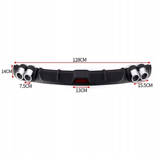 УНІВЕРСАЛЬНИЙ ЗАДНИЙ ДИФУЗОР БАМПЕР СПІДНИЦЯ ВИХЛОП 128 СМ ЧОРНИЙ