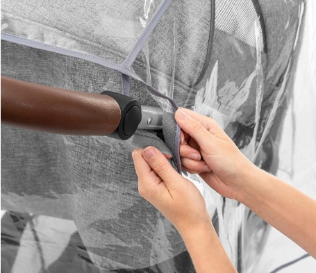 комфортно надягати та видаляти: Завдяки бічній, водонепроникній блискавці, ваша дитина може швидко залишити коляску, не потребуючи повністю зняти дощову кришку. Це рішення забезпечує швидкий доступ та зручність у будь -якій ситуації.