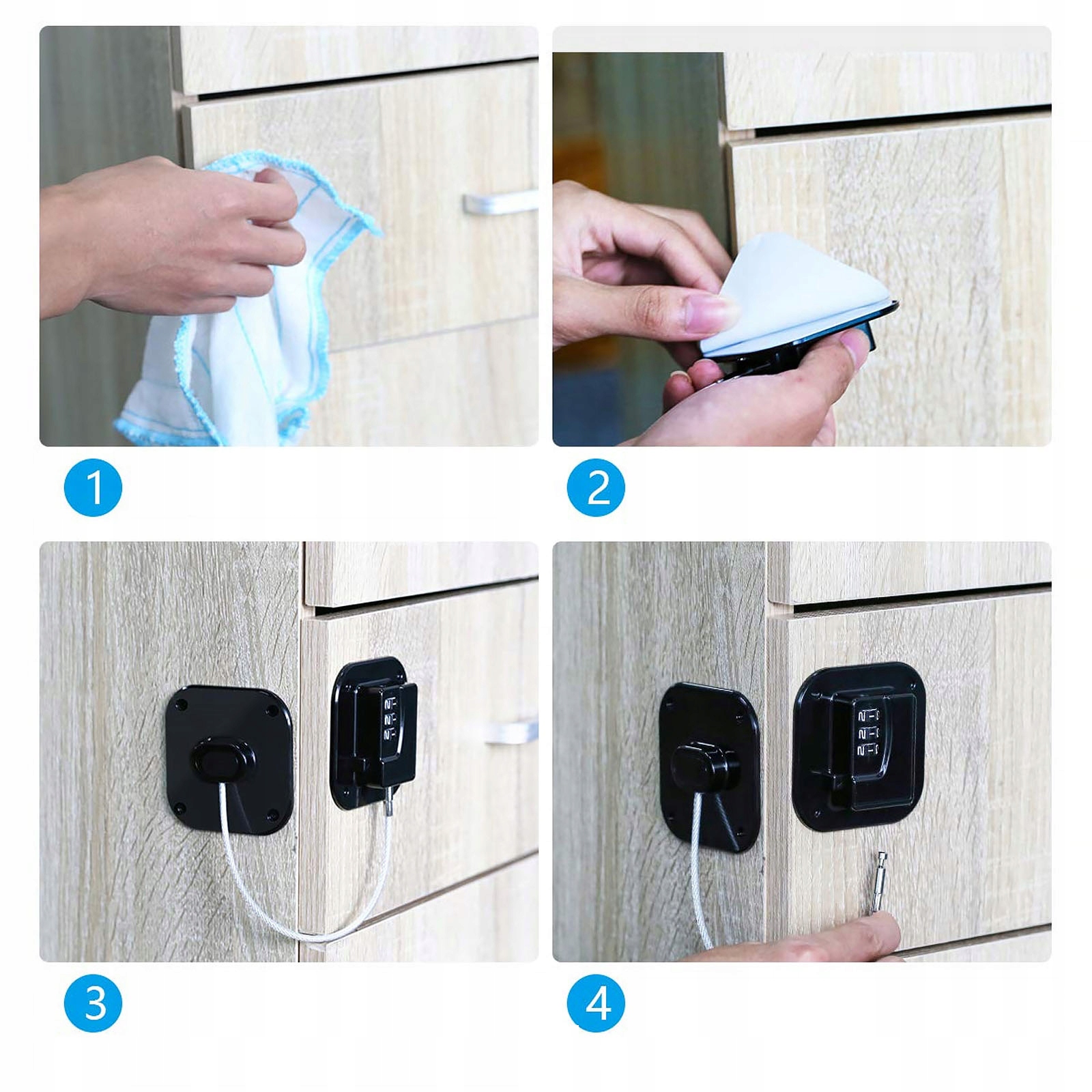 Замок з гаслом заважає дітям приймати пальці при відкритті холодильника, заважає дітям споживати заборонені продукти батьками та навіть випадкове закриття дітей у холодильнику. Просто відшліфуйте наклейку і приклейте її до холодильника. Перед вживанням очистіть і висушіть поверхню холодильника. 3 м наклейки сильні і не пошкодять поверхню холодильника, будь ласка, використовуйте їх.