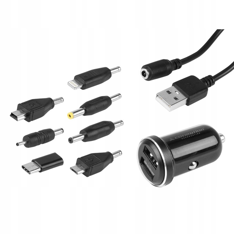 УНІВЕРСАЛЬНИЙ ЗАРЯДНИЙ ПРИСТРІЙ 2XUSB 3.4A 7 НАКОНЕЧНИКІВ ЧОРНИЙ