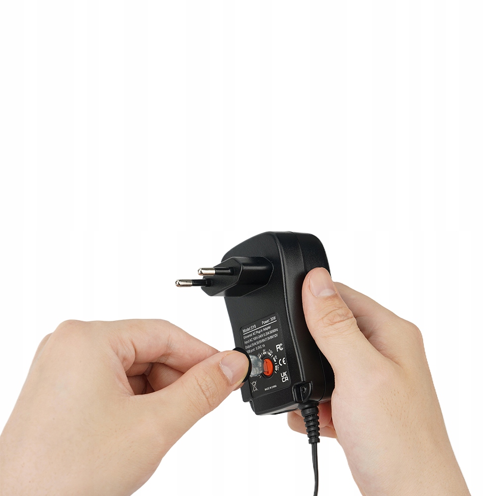 Установіть правильну вихідну напругу постійного струму – доступно 7 варіантів (якщо потрібної напруги немає, ви можете вибрати інший, наприклад, якщо для вашого пристрою потрібне 5,5 В, ви можете вибрати 5 В). або 6 В).