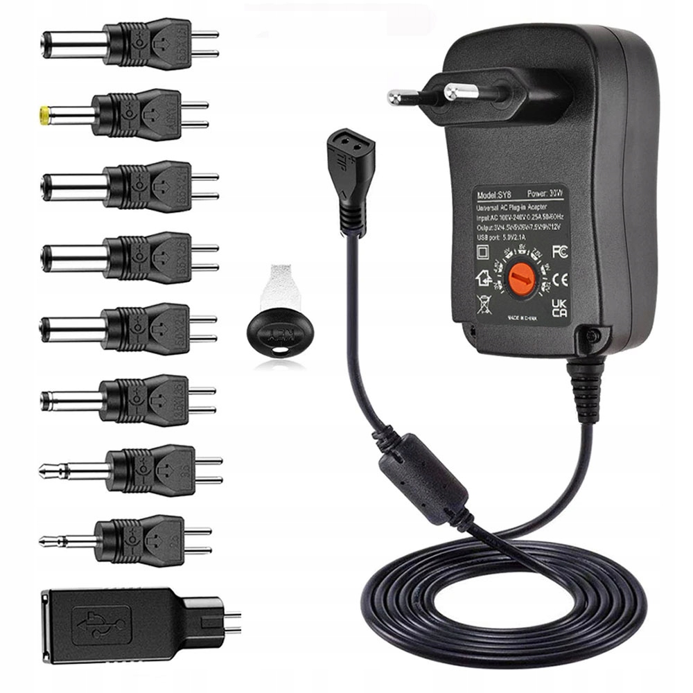 Універсальний блок живлення з регульованою вихідною напругою, 9 аксесуарів, вбудований запобіжник