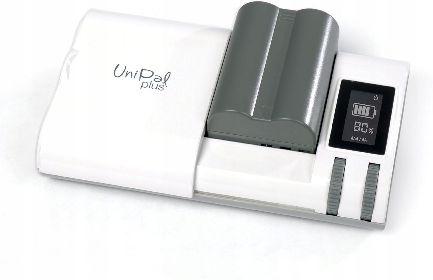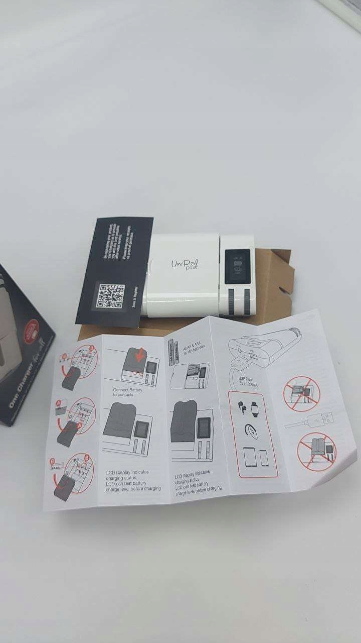 UniPal Plus заряджає практично всі типи літій-іонних батарей і батарей AA/AAA. Додатковий USB-вихід дозволяє заряджати мобільні пристрої, наприклад iPhone або iPad, що робить його надзвичайно універсальним.