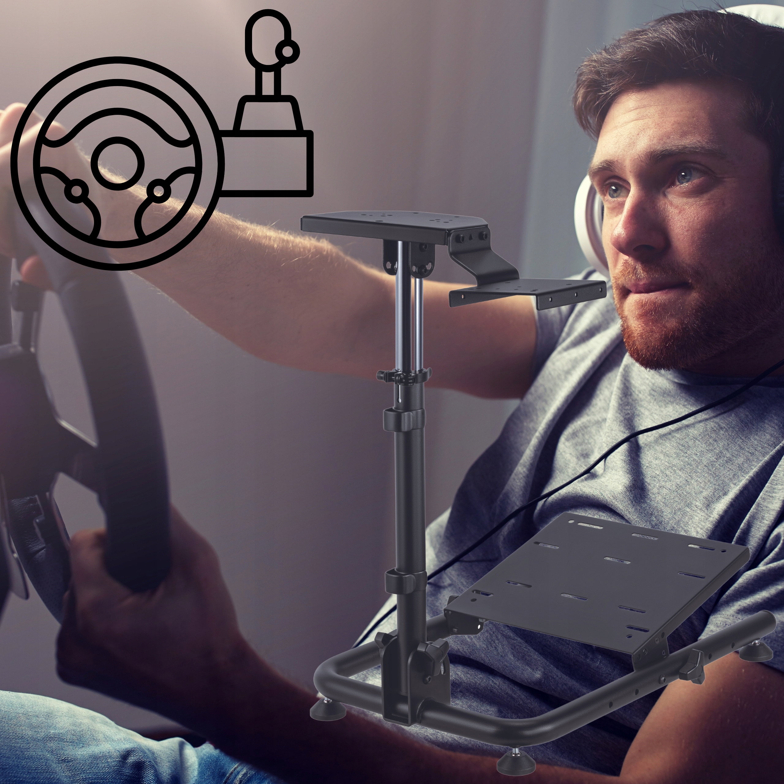 Надійна конструкція: виготовлена зі сталі, наша підставка для керма є міцною та довговічною, що забезпечує стабільність навіть під час найдинамічніших гонок.