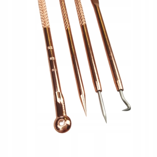 Набір з 4 чайних ложок для безпечного видалення чорних крапок, вугрів і прищів! Професійні ложечки-петлі призначені для роботи з чорними крапками та іншими забрудненнями на обличчі. Вони ідеально підходять для видалення прищів у важкодоступних місцях!