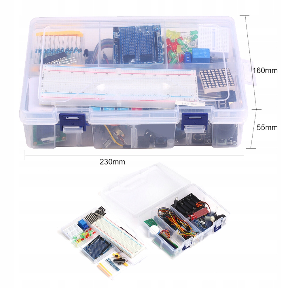 ➡ Стартерний комплект UNO R3 містить великий діапазон електронних компонентів, таких як резистори, конденсатори, світлодіоди, кнопки, потенціометри та датчики, які можна використовувати в різних проектах. Ви можете створювати електронні схеми, керування освітленням, датчиками для складання, читати інформацію з різних датчиків, а не тільки.