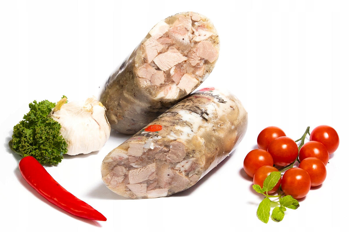 Інгредієнт: м'ясо свинячі голови (21%), свинячі субпродукти (24% - в тому числі язики, серця), свинячі шкурки (10%), свиняче м'ясо (8%), вода, сіль, натуральні спеції та екстракти спецій.