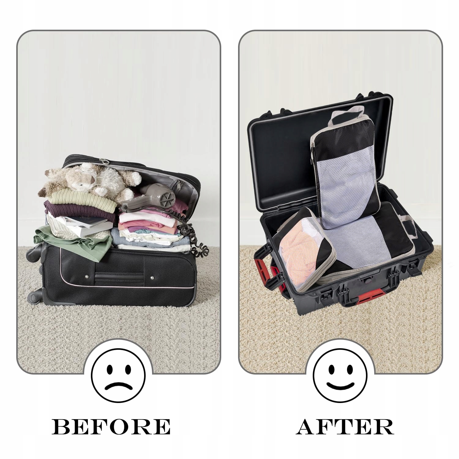 Організована упаковка та економія простору: Розділіть свій різний одяг з кубиками упаковки в декількох розмірах. Економте час для своїх подорожей, екскурсій або заходів на свіжому повітрі, уникаючи неправильного розміщення різних предметів та повного використання місця у вашому багажі.