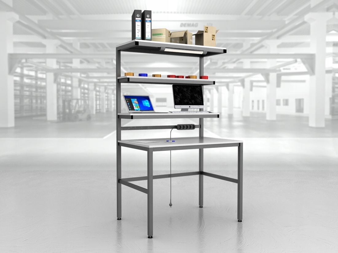 Високоякісний верстак для пакування посилок із зварених у стійку форму металевих профілів.