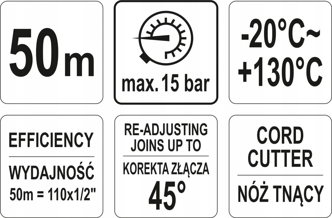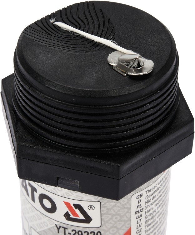 Різьба YATO призначена для використання в установках з максимальним тиском до 15 бар і робочою температурою від -20°C до 130°C . Нитка виготовлена з дуже міцних поліамідних волокон, що робить її стійкою до розривів. Крім того, на відміну від тефлонових стрічок, використання нитки дозволяє виправляти стик до 45°, що значно полегшує монтаж і знижує витрати. Крім того, різьба YATO просочена спеціальним силіконовим мастилом, що забезпечує дуже хороші ущільнювальні властивості, крім того, вона не твердне. Це робить відкручування гвинтового з’єднання дуже легким навіть через багато років. Зручний у використанні тюбик в кришці має двосторонній відрізний ніж, який дозволяє легко і швидко нарізати нитку потрібної довжини. Різьба YATO довжиною 50м дуже ефективна і дозволяє герметизувати до 110 швів діаметром 1/2». У доданій таблиці показано запропоновану кількість котушок для окремих діаметрів труб.