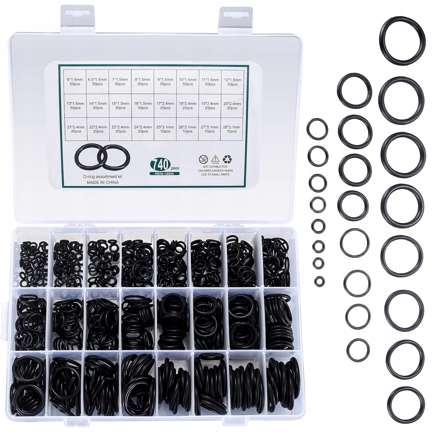 Набір ущільнювальних кілець O-ring, 740 шт., набір гумових ущільнювачів, метричні ущільнення для ремонту автомобіля, гідравлічні шайби (24 розміри, чорні)