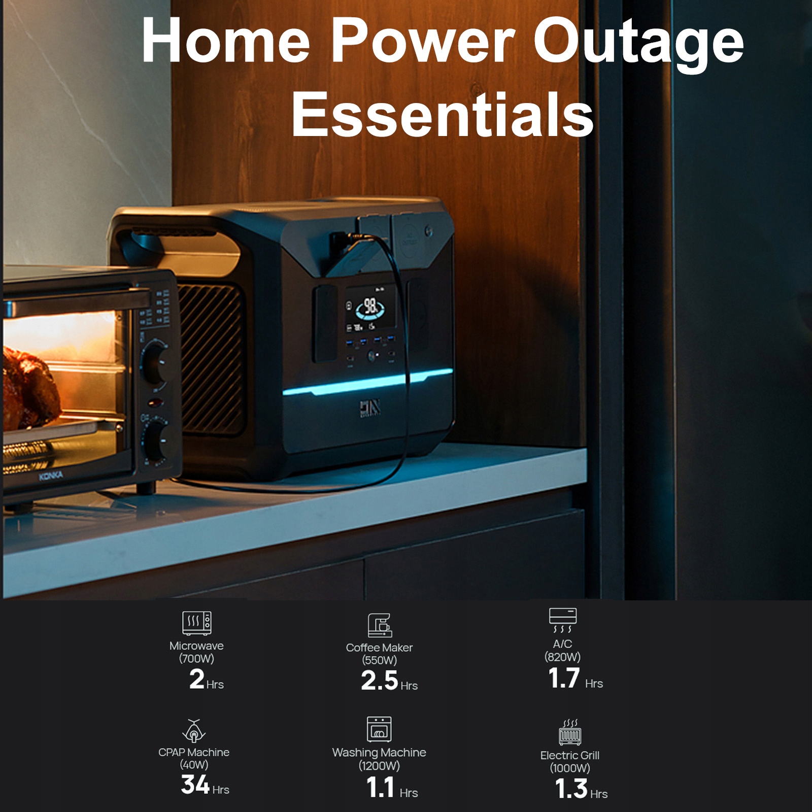Надійна та ефективна: Побудована вдосконалена акумуляторна технологія 25.6V 54AH LifePo4, електростанція забезпечує стабільну та надійну потужність. Завдяки коефіцієнту перетворення високої енергії ви можете довіряти цій станції живлення, яка забезпечить ефективне та постійне джерело живлення ваших пристроїв, забезпечуючи підключення, де б ви не були.