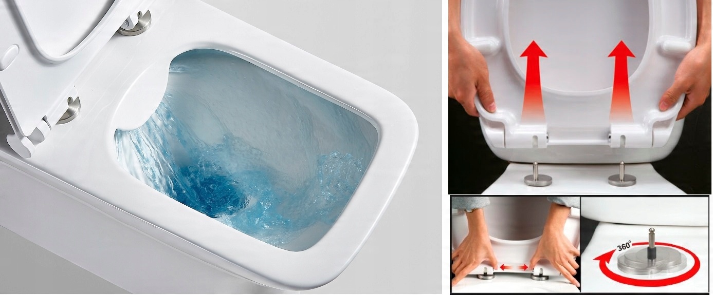 Система промивання відкритої чаші, т.зв. без губи (коміра), що забезпечує легшу гігієну та запобігає розмноженню бактерій.