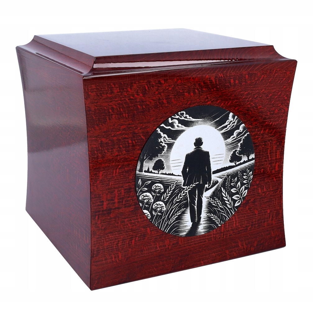 Вшановуючи пам’ять чоловіка, прекрасно зроблена урна - це щирий спосіб зберегти його спадщину. Наша урна для її чоловіка була розроблена як сучасна коробка з червоного дерева з злегка закругленими краями, що пропонує витонченість та довговічність.