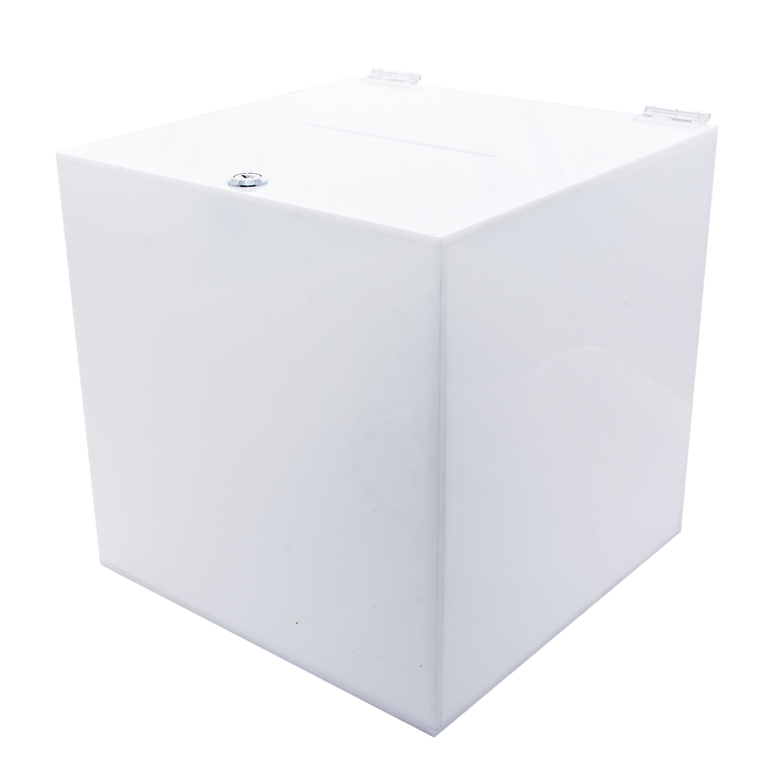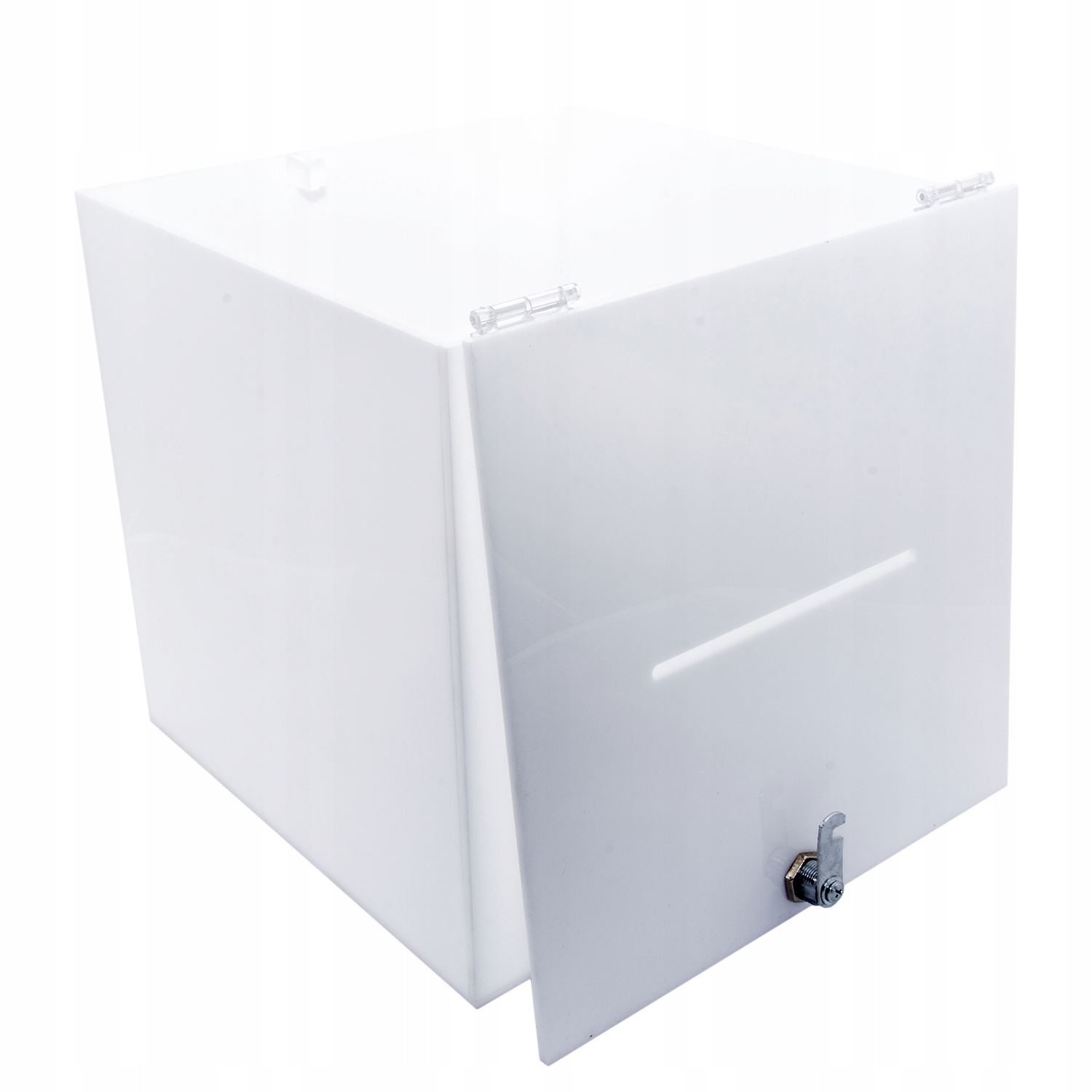 Скарбничка з білого оргскла (ПММА - поліметилметактилат) з товщиною стінок 5 мм і розмірами (ширина, глибина і висота):