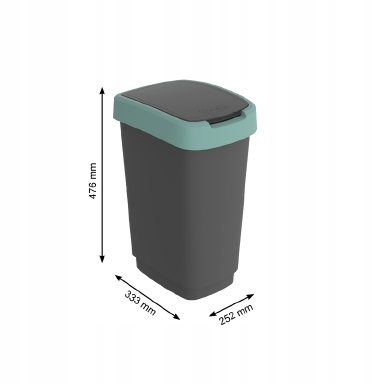 З розмірами 333 x 252 x 476 мм (Д x Ш x В) контейнер для сміття TWIST вміщує 25 літрів і його можна дуже добре поєднувати з іншими. Різнокольорові контейнери мають відкидну кришку, яка не тільки надійно та безшумно закривається, але й може працювати таким чином, щоб заощадити місце. Крім того, ви можете просто дотягнутися до широкого краю кришки, яка ідеально закриває мішок для сміття, тому ви можете легко переміщати контейнер. Звичайно, урна для сміття виготовлена з високоякісного пластику, який вражає своєю довговічністю та підходить для алергіків.