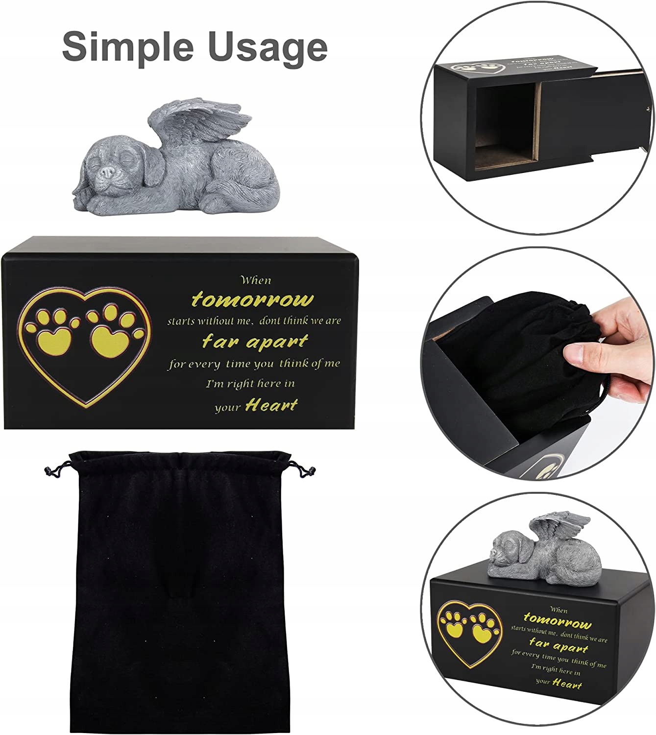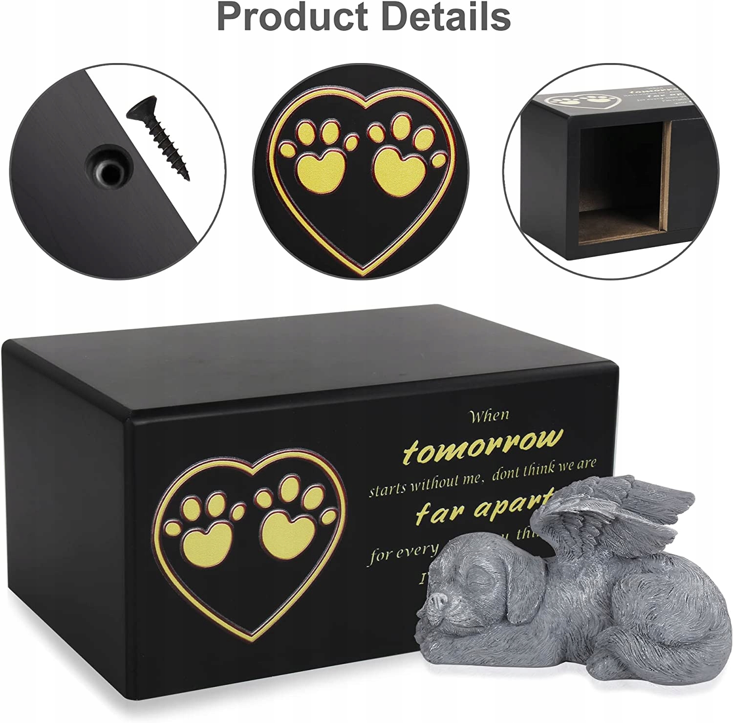 - І зберігайте спогади: пам’ять про вашу улюблену собаку, висловіть свої почуття та дружбу до вашої тварини та забезпечте вашій тварині тихе та елегантне місце для відпочинку. Це пам’ятна коробка з ангелом на ній і постійний емоційний зв’язок між вами та вашим вихованцем.