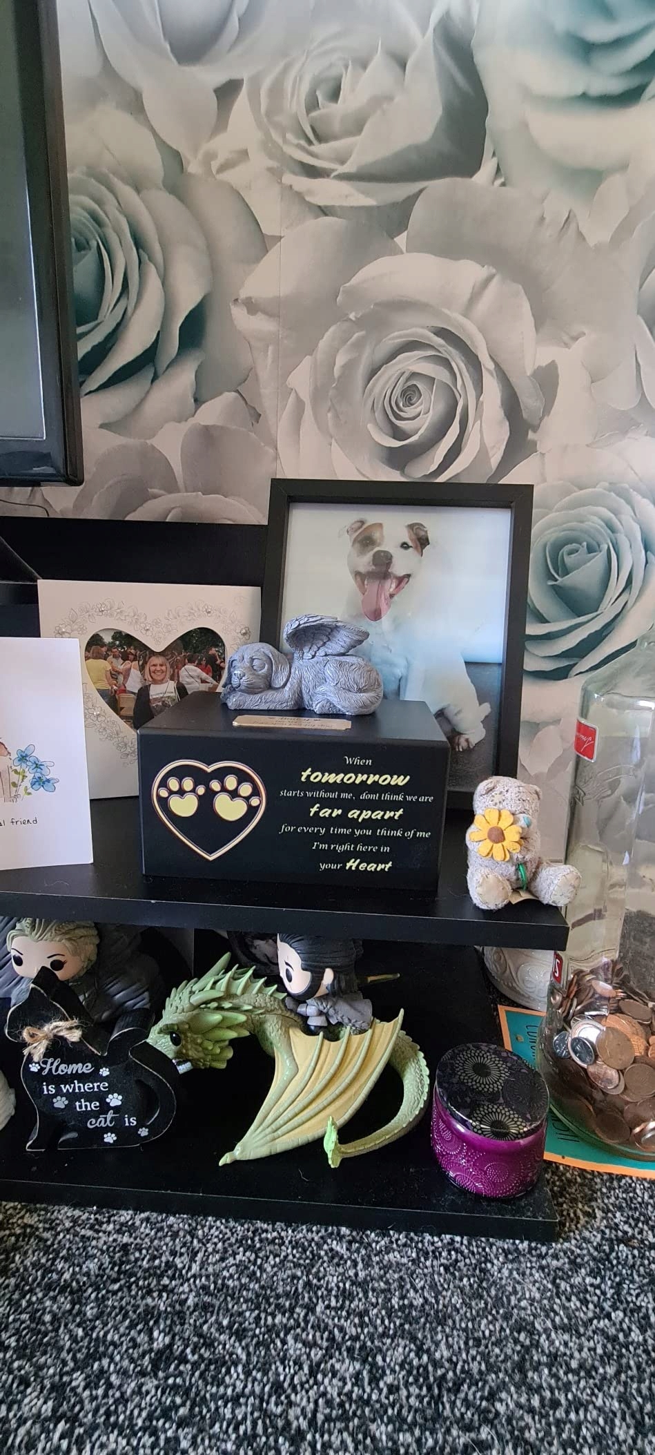 - і зберігайте спогади: сувенір про вашого улюбленого домашнього собаку, висловіть свої почуття та дружбу до свого вихованця та забезпечте вашому вихованцеві тихе та елегантне місце для відпочинку. Це пам’ятна коробка з ангелом на ній і постійний емоційний зв’язок між вами та вашим вихованцем.