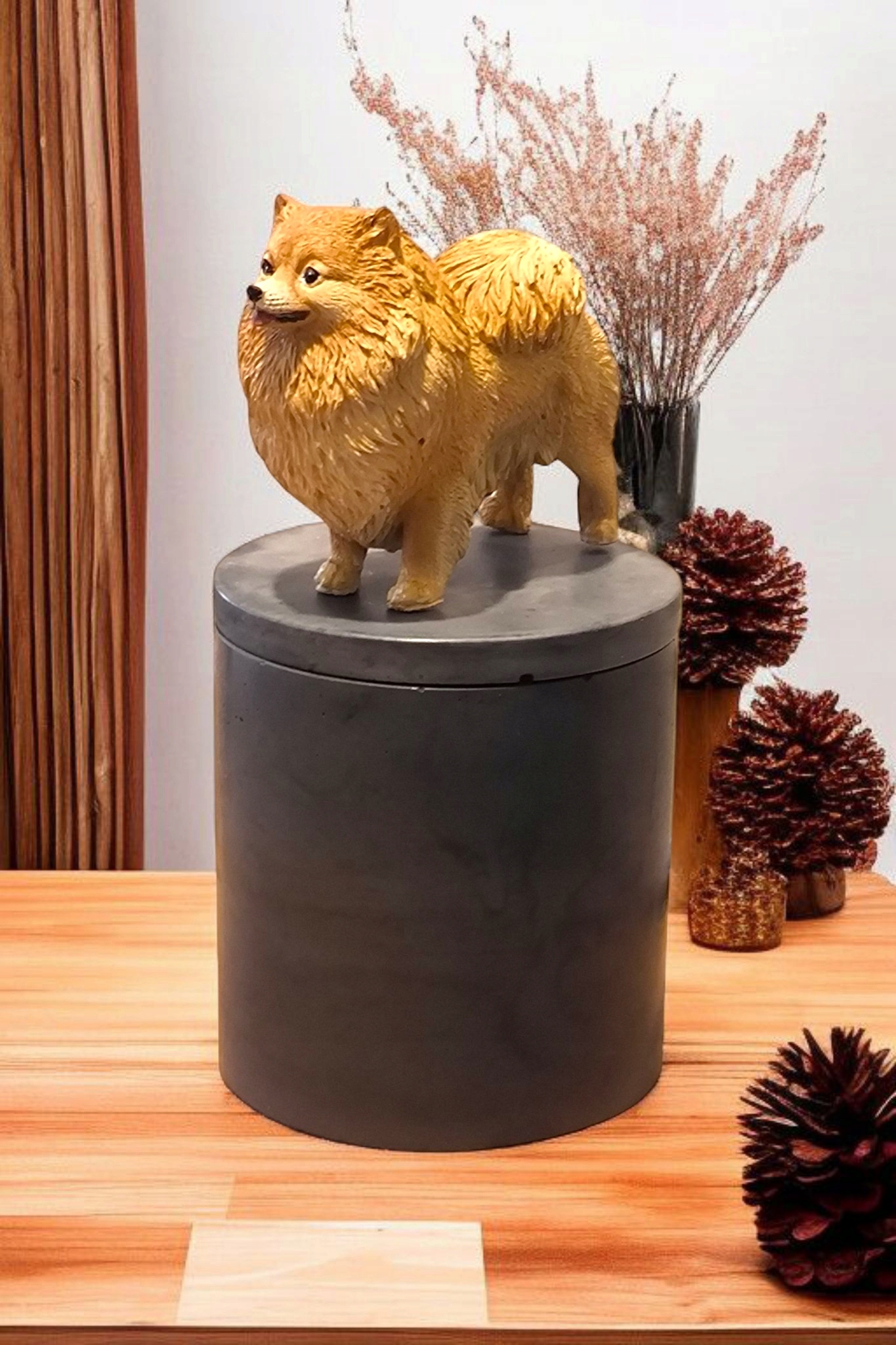 Втрата собаки - це болісне враження. Ми знаємо, як важливо зберегти пам’ять про чотирьох зловжитого друга. Наша урна ручної роботи з фігуркою Помераниани Шпіц - це унікальний спосіб відсвяткувати його присутність у вашому житті.