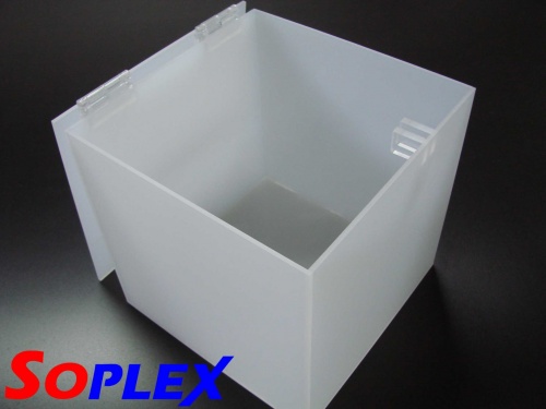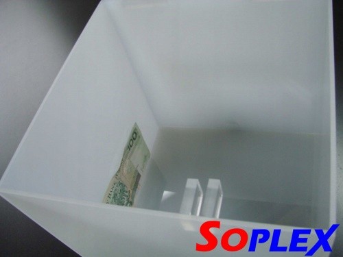Скарбничка з прозорого оргскла молочного кольору (ПММА - поліметилметактилат) з товщиною стінки 3 мм і розмірами (ширина, глибина і висота):