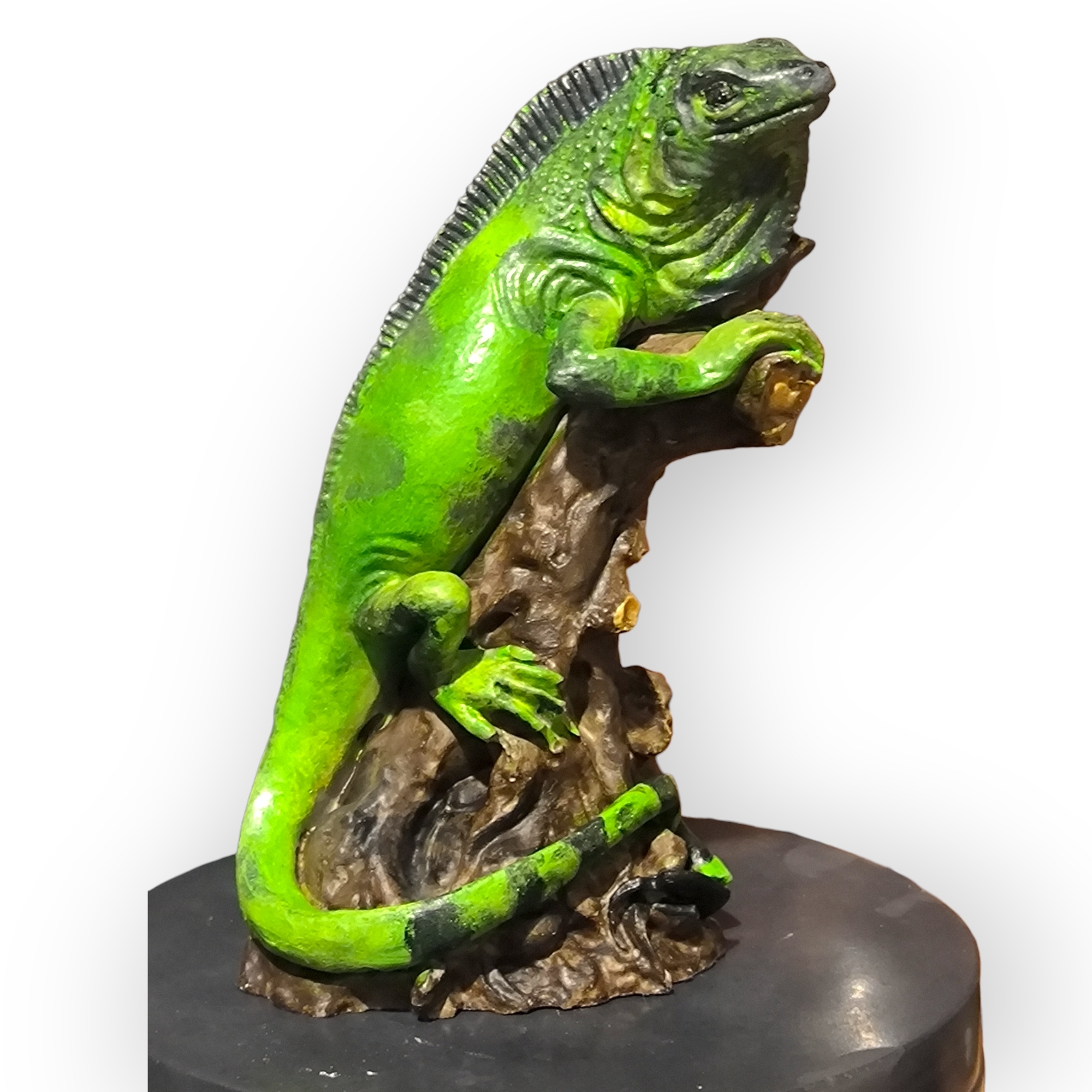 • Фігурка зеленої ігуани (Iguana): відлита вручну з бетону та розписана вручну