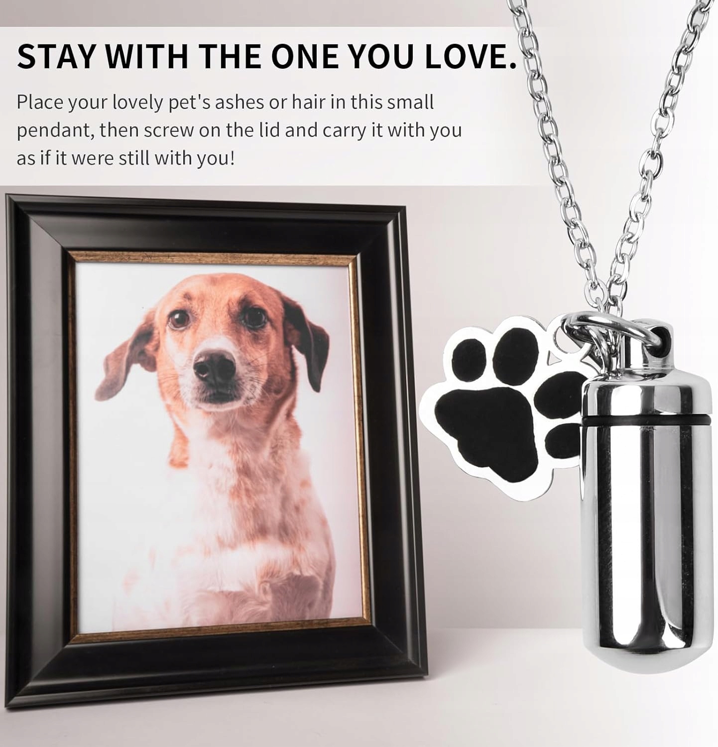 - Найкращий сувенір - покладіть у попіл або волосся коханого вихованця до цього маленького кулон з урною, а потім накрутить кришку і носіть її з собою, ніби вони були на вашому боці. Ідеально запам'ятати кохану людину назавжди.