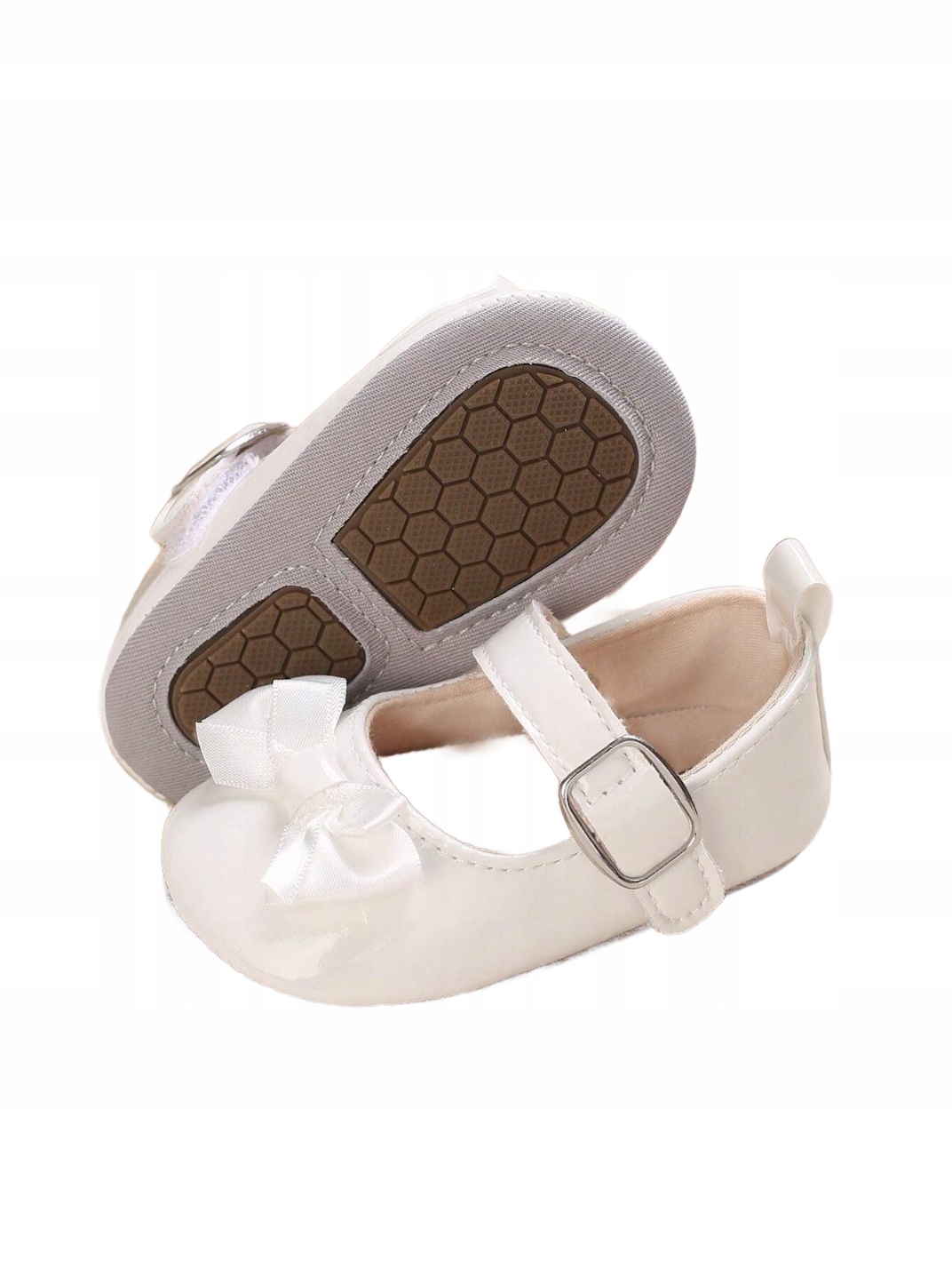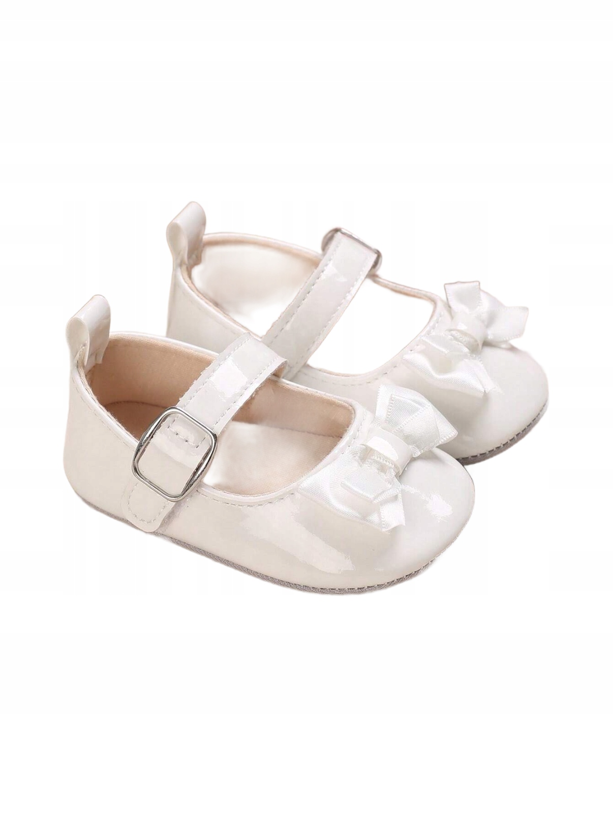 Urokliwe Białe Lakierki z Kokardką