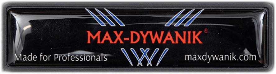 Ексклюзивна емблема MAX-DYWANIK - Made for Professionals, виготовлена за технологією 3D і встановлена на фірмовому кріпленні, повністю стійка до води, бруду та погодних умов.