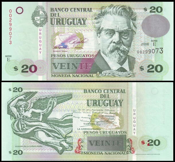 УРУГВАЙ, 20 ПЕСО УРУГВАЙОС 2008, сер. E, вибір 86a