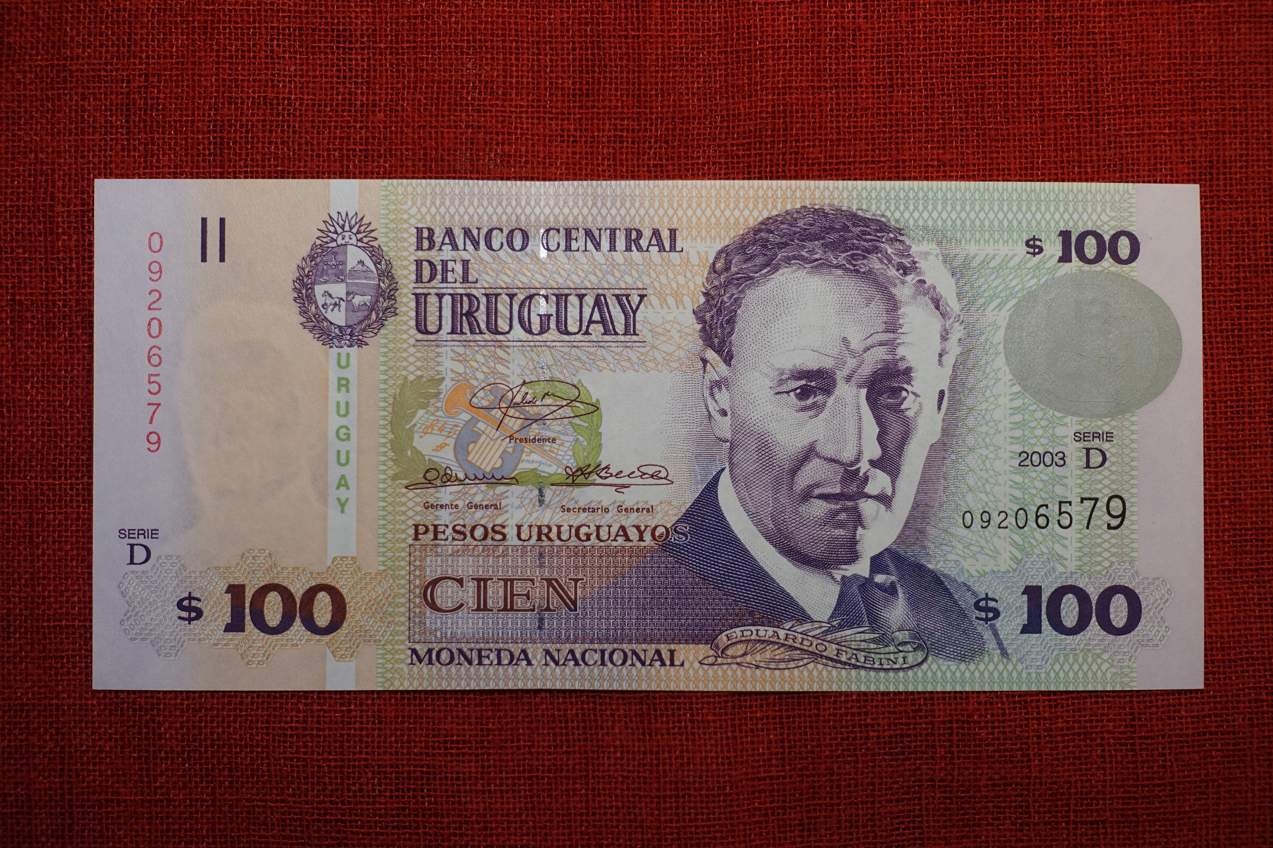 Продам банкноту УРУГВАЙ номіналом 100 песо випуску 2003 року кат. немає P-85 (принт FC Oberthur, Франція), серія D.