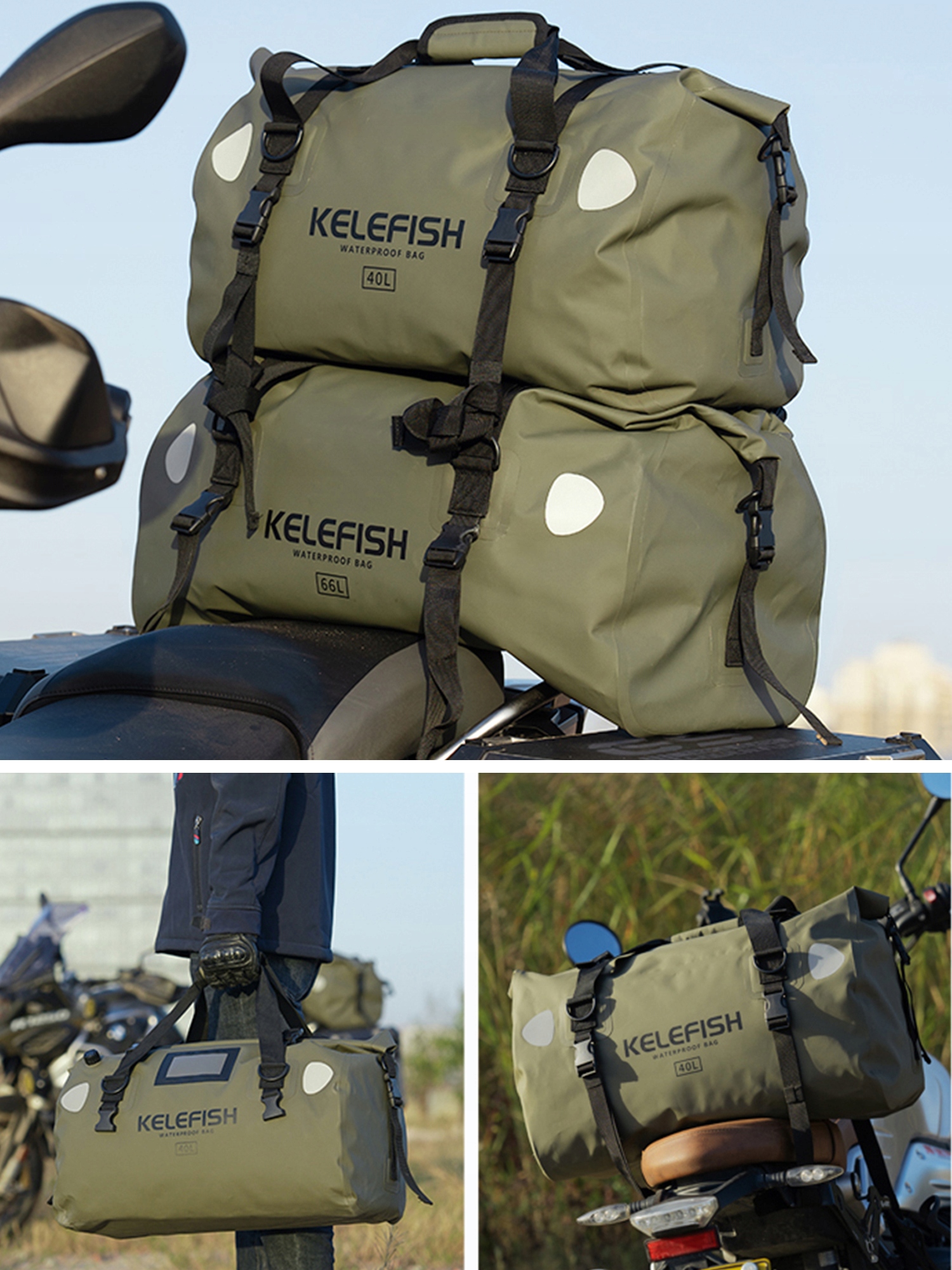 ⭐ Водонепроникна мішок для подорожей 66 л, сухий мішок для туристичних мотоциклів з швидкими прикріпленими смужками, їздити на мотоциклі, катання на байдарках, рафтинг, плавання на човнах та кемпінг 2>