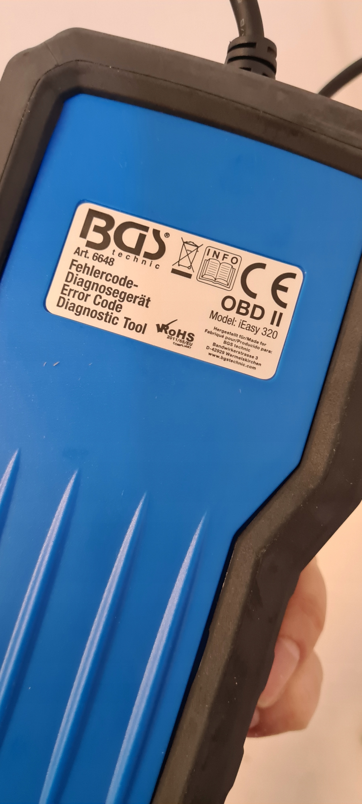 BGS Technic представляєдіагностичний пристрій BGS 6648 OBD II (EOBD), чудовий інструмент для швидкої та ефективної діагностики та очищення кодів помилок OBD2 в автомобілях. Пристрій пропонує можливість зчитувати коди чітким і зрозумілим способом без необхідності використовувати додаткові списки кодів помилок. Його також можна використовувати для перегляду збережених значень і кодів готовності, що є вирішальним при пошуку несправностей. Він підтримує лише коди помилок, пов’язані з керуванням двигуном, не зчитуючи дані з систем комфорту та безпеки, таких як Airbag, ABS або радіо.