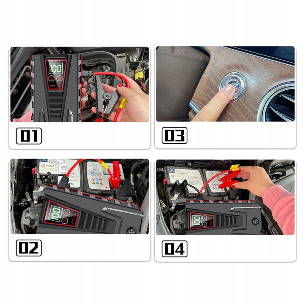 Автомобільний зарядний пристрій для швидкого старту, щоб швидко запустити акумулятор за лічені секунди. підходить для автомобілів, вантажівок, мотоциклів, човнів, тракторів, газонокосарок тощо. Має два вихідних порти USB. За допомогою цього автомобільного підсилювача акумулятора ви можете швидко зарядити два пристрої одночасно: телефон, планшет, фотоапарат тощо. Багатофункціональний портативний автомобільний пусковий пристрій може вирішити ваші проблеми із зарядкою в будь-який час і в будь-якому місці.