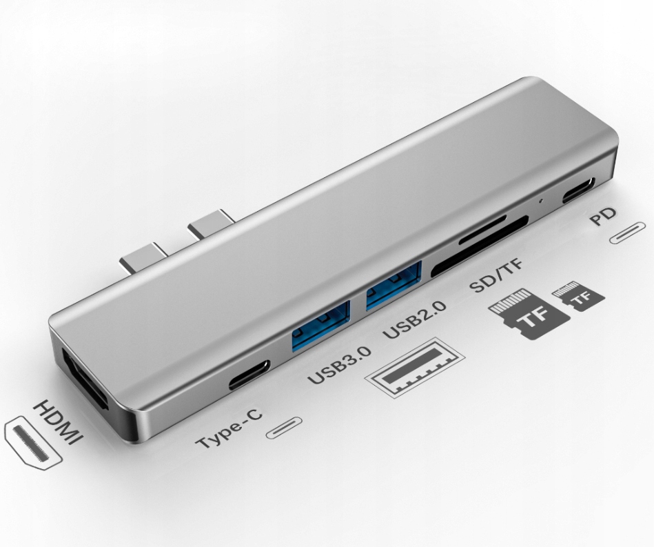 Дозволяє розширити Macbook за допомогою роз’єму USB-C додатковим пристроєм для читання карток USB / HDMI / USBC / SD + TF