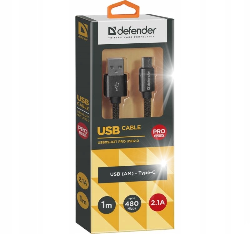 - General description USB Defender Am-Type C 1m 2,1A Black cable